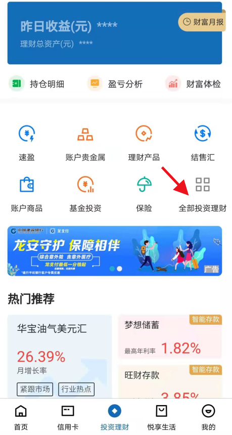 第二步:點擊“投資理財”之后找到中間靠右側“全部投資理財”
