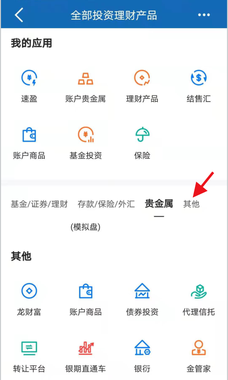 第三步:點“全部投資理財”后,在我的應用下方靠右選擇“其他”