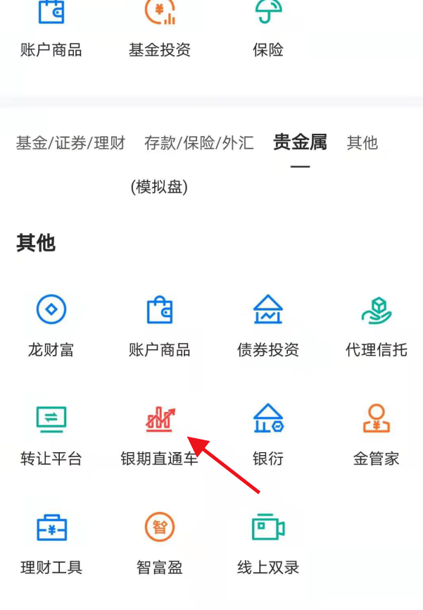 第四步:點開“其他”在手機頁面最下側找到“銀期直通車”